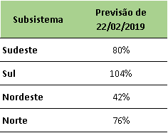 Previsão de Energia Natural Afluente – ENA para março/2019