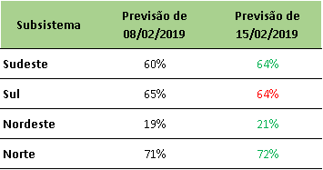 Previsão de Energia Natural Afluente – ENA para fevereiro/2019