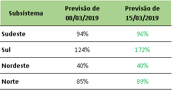 Na última revisão do Programa Mensal de Operação, divulgado nesta sexta-feira (15/03/2019) o ONS divulgou melhora nas afluências em todos os subsistemas, com destaque para o Sul do país que teve revisão para 172% da média.