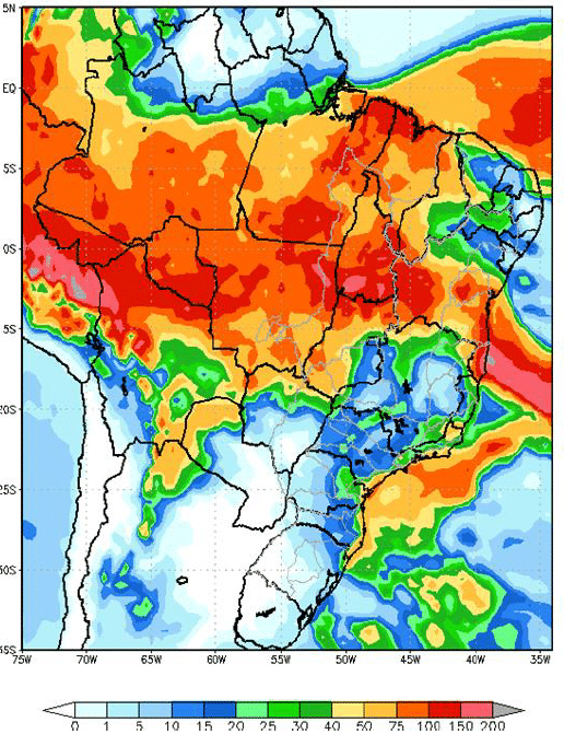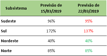 Já nos submercados Norte e Nordeste haverá grandes volumes de chuvas na próxima semana e as projeções para final do mês permaneceram estáveis.
