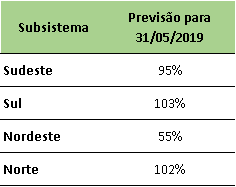 Previsão de Energia Natural Afluente – ENA para maio/2019