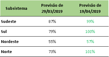 Previsão de Energia Natural Afluente – ENA para abril/2019