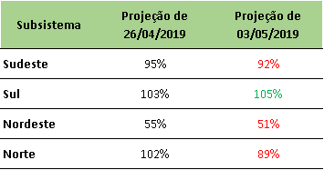 Previsão de Energia Natural Afluente – ENA para maio/2019