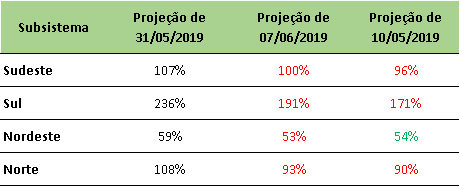 Previsão de Energia Natural Afluente – ENA para junho/2019