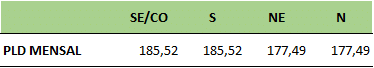 Com a divulgação da última semana o PLD do mês de julho/19 fechou acima de R$ 180,00 nos principais submercados: