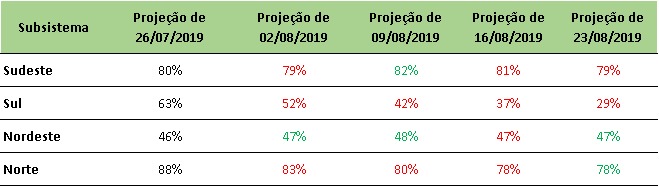 Previsão de Energia Natural Afluente – ENA para agosto/2019