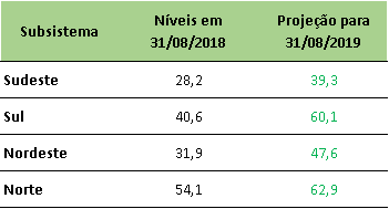 Entretanto, os níveis de armazenamento para o final do mês devem ser significativamente maiores que o mesmo período do ano anterior (2018).