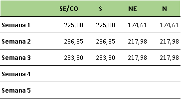 Nos submercados Norte e Nordeste os preços ficaram estáveis.