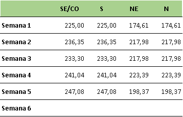 PLD Semanal agosto/2019 (R$/MWh)