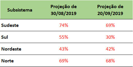 O ONS divulgou na última sexta-feira (20/092019) projeção de Energia Natural Afluente – ENA para setembro/2019, onde apresentou aumento nas chuvas no Sudeste do país.