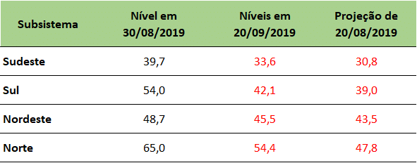 Na última sexta-feira (20/09/2019), o ONS divulgou a projeção de níveis de armazenamento para final de setembro/2019.