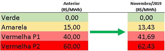 Atualização dos Valores das Bandeiras Tarifárias – Novembro/2019