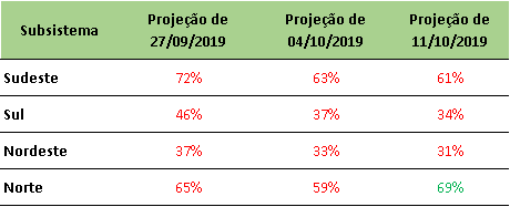 Apesar do aumento semanal, outubro/2019 deverá ser de afluências abaixo da média.
