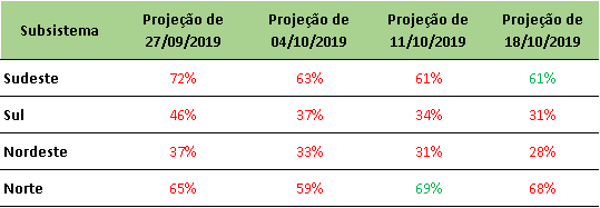 Previsão de Energia Natural Afluente – ENA para outubro/2019
