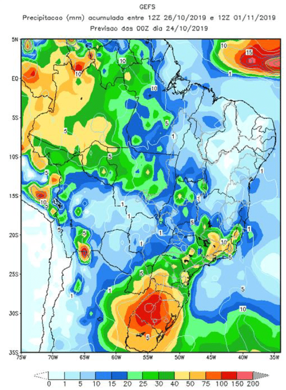 Precipitação Acumulada Prevista para a 1ª semana de novembro (26/10 a 01/11/2019)