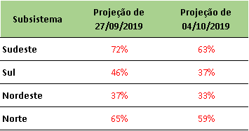 Previsão de Energia Natural Afluente – ENA para outubro/2019