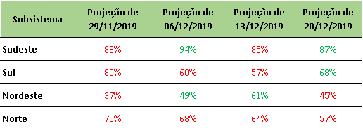 Previsão de Energia Natural Afluente – ENA para dezembro/2019