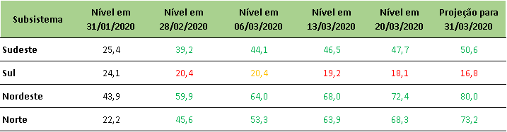 Na última sexta-feira (20/03/2020), o ONS divulgou a projeção de níveis de armazenamento para final de março/2020.