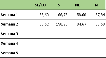 Nos demais submercados ocorreu aumento dos preços, com destaque para a região Sul que teve aumento de mais de 130% em relação a semana anterior devido a falta de chuvas na região.