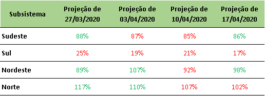 O ONS divulgou na última sexta-feira (17/04/2020) a projeção de Energia Natural Afluente – ENA para abril/2020, onde apresentou volumes próximos da média histórica para praticamente todo o país, com exceção da região Sul.
