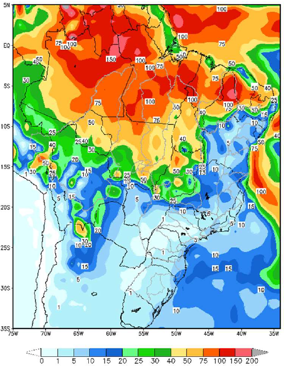 Enquanto isto, nos demais subsistemas projeções indicam chuvas dentro da media.