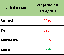 O ONS divulgou na última sexta-feira (24/04/2020) a projeção de Energia Natural Afluente – ENA para maio/2020, onde apresentou volumes baixíssimos de chuva para a região Sul do país, enquanto no Norte volumes devem ser acimas da média.