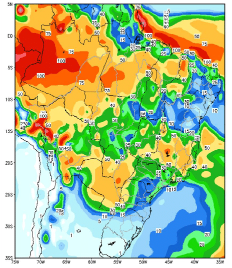 Previsões indicam volumes dentro da media em grande parte do país.