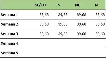 PLD Semanal abril/2020 (R$/MWh)