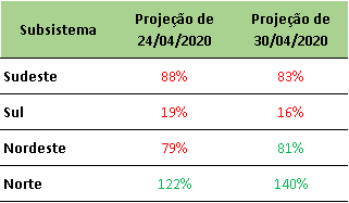 O ONS divulgou na última quinta-feira (30/04/2020) a projeção de Energia Natural Afluente – ENA para maio/2020, onde apresentou queda nas afluências previstas neste mês para os subsistemas Sul e Sudeste/Centro-oeste.