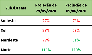 O ONS divulgou na última sexta-feira (05/06/2020) a projeção de Energia Natural Afluente – ENA para junho/2020, que se manteve praticamente estável em todo o país, com exceção do Nordeste onde houve aumento de 4% na projeção em relação a média histórica.