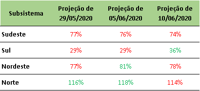 O ONS divulgou na última quarta-feira (10/06/2020) a projeção de Energia Natural Afluente – ENA para junho/2020, onde apresentou pequena redução nas projeções de praticamente todos os submercados, com exceção do Sul do país.
