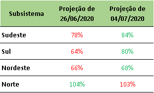 O ONS divulgou na última sexta-feira (04/07/2020) a projeção de Energia Natural Afluente – ENA para julho/2020, onde apresentou aumento em relação à projeção da última semana em praticamente todos os submercados.