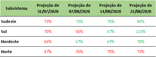 Previsão de Energia Natural Afluente – ENA para agosto/2020