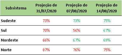 Previsão de Energia Natural Afluente – ENA para agosto/2020