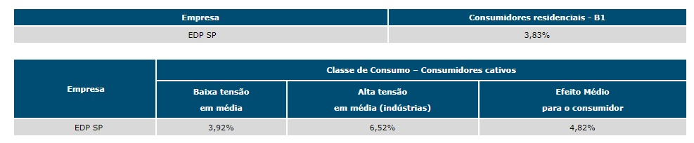 A Agência Nacional de Energia Elétrica – Aneel aprovou no dia 20 de outubro de 2020 o reajuste tarifário anual da EDP São Paulo que entraram em vigor a partir do último dia 23 e tem vigência até 22 de outubro de 2021.