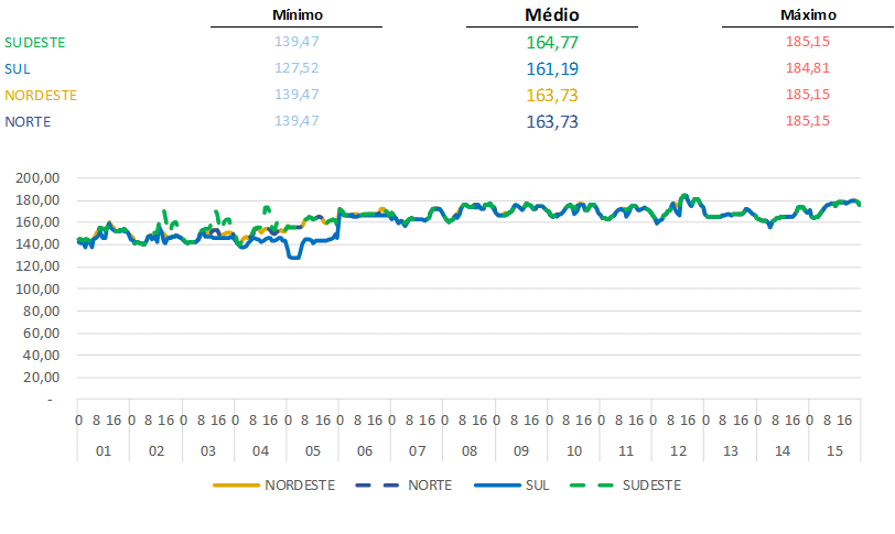 O Preço de Liquidação das Diferenças – PLD médio da primeira quinzena de fevereiro (01 a 15) está abaixo de R$/MWh 165,00 e deve permanecer assim nesta próxima semana, segundo a FCF.