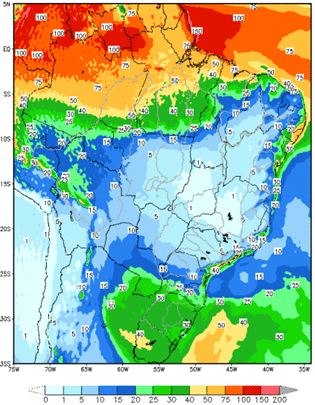 Para a próxima semana há volumes significativos de chuvas no extremo Norte e extremo Sul do país.