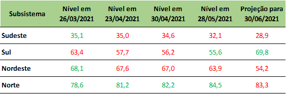 Ainda, o operador estima queda nos níveis de armazenamento em grande parte do país, com exceção da região Sul.
