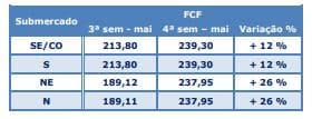 A Câmara de Comercialização de Energia Elétrica – CCEE divulgou na última sexta-feira (21/mai) a Função de Custo Futuro – FCF válida para esta semana, de 22 a 28, indicando aumento de 12% no Sul e Sudeste, e 26% no Norte e Nordeste.