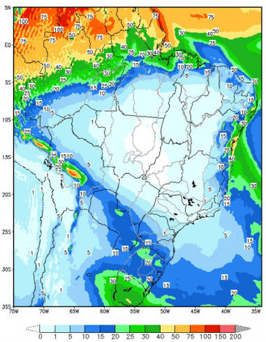 A expectativa da próxima semana é que ocorra pequeno volume de chuvas na região Sul, enquanto na maior parte do país as projeções indicam seca.