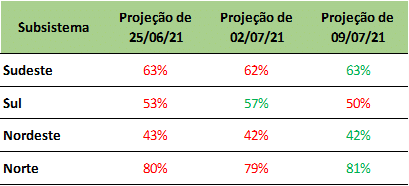 Previsão de níveis de armazenamento para final de julho/2021 (%)