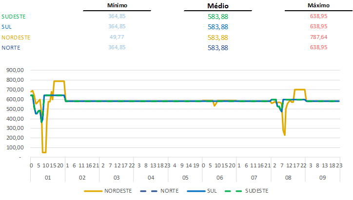 O PLD de agosto/21 também deve ter a média mensal em R$/MWh 583,88 como o mês anterior.