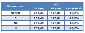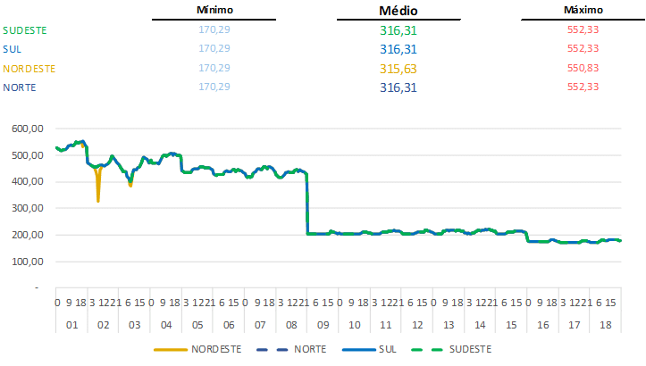 Com esta queda, os preços ficaram abaixo de R$/MWh 200,00 devido ao aumento significativo de chuvas na região Sudeste/Centro-oeste.