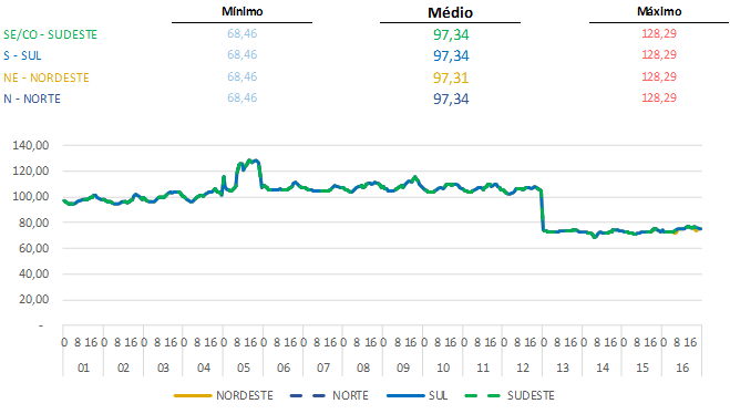 A manutenção destes preços até final do mês deve puxar para baixo o preço de novembro, podendo chegar na casa dos R$/MWh 87,00.