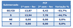 A Câmara de Comercialização de Energia Elétrica – CCEE apresentou nessa última semana queda na Função de Custo Futuro – FCF referente a 2ª semana de fevereiro/22, a qual pode ser explicada em função da melhora nas perspectivas de chuvas, principalmente na região Sudeste/Centro-oeste.