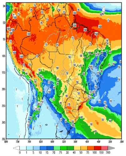 A expectativa é de que as afluências continuem elevadas no Norte e Nordeste do pais, inclusive mantendo o canal de umidade e elevando as chuvas também no Sul, que deve atingir 70% da Média de Longo Termo, até final do mês de março.