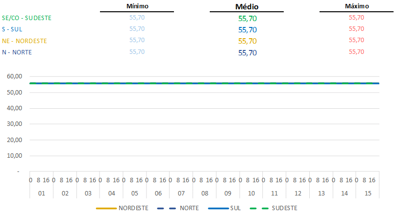 Desde o final de janeiro/2022 os preços de mantém no piso em todos os horários e submercados do SIN, com a manutenção desta perspectiva para março/2022.