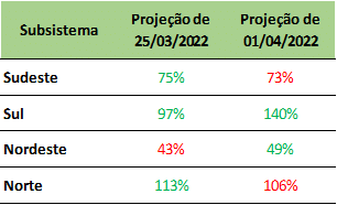 Previsão de Energia Natural Afluente – ENA para abril/2022