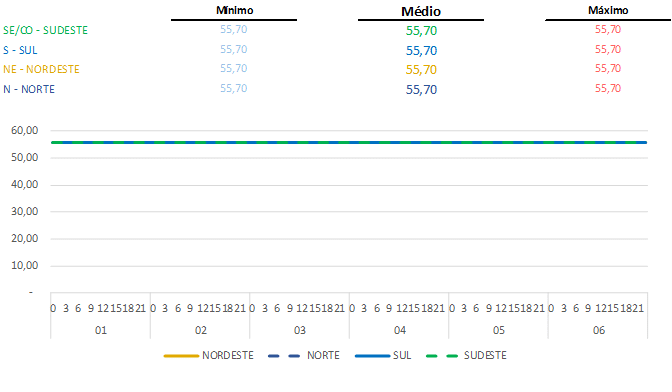 A Câmara de Comercialização de Energia Elétrica – CCEE divulgou o Preço de Liquidação das Diferenças – PLD. Novamente, ele segue no piso (R$55,70/MWh) em todos os submercados, o que se deve muito em função da realização de volumes consideráveis de chuvas em todo país, as quais vêm se mantendo constantes.