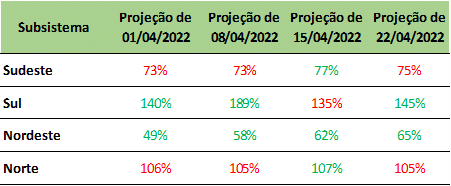 Vale ressaltar ainda, que para o subsistema Sul projeta-se ascensão nas afluências enquanto estima-se para os demais, um contexto de recessão.